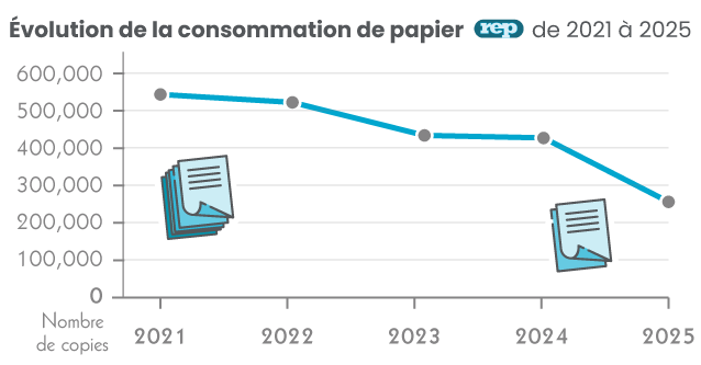La réduction du papier reste un objectif suivi dans le temps, avec des indicateurs et des actions d’amélioration continue.